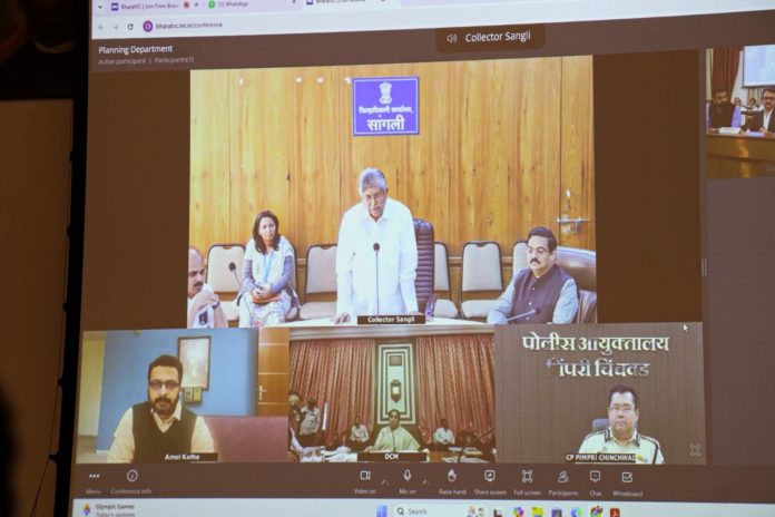 यावेळी उच्च व तंत्र शिक्षण मंत्री चंद्रकांतदादा पाटील, खासदार डॉ. अमोल कोल्हे, आमदार शरद सोनवणे, पालक सचिव व्ही. राधा, उपमुख्यमंत्री यांचे सचिव डॉ. राजेश देशमुख, पुणे शहरचे पोलीस आयुक्त अमितेश कुमार दूरदृष्यप्रणालीद्वारे उपस्थित होते.